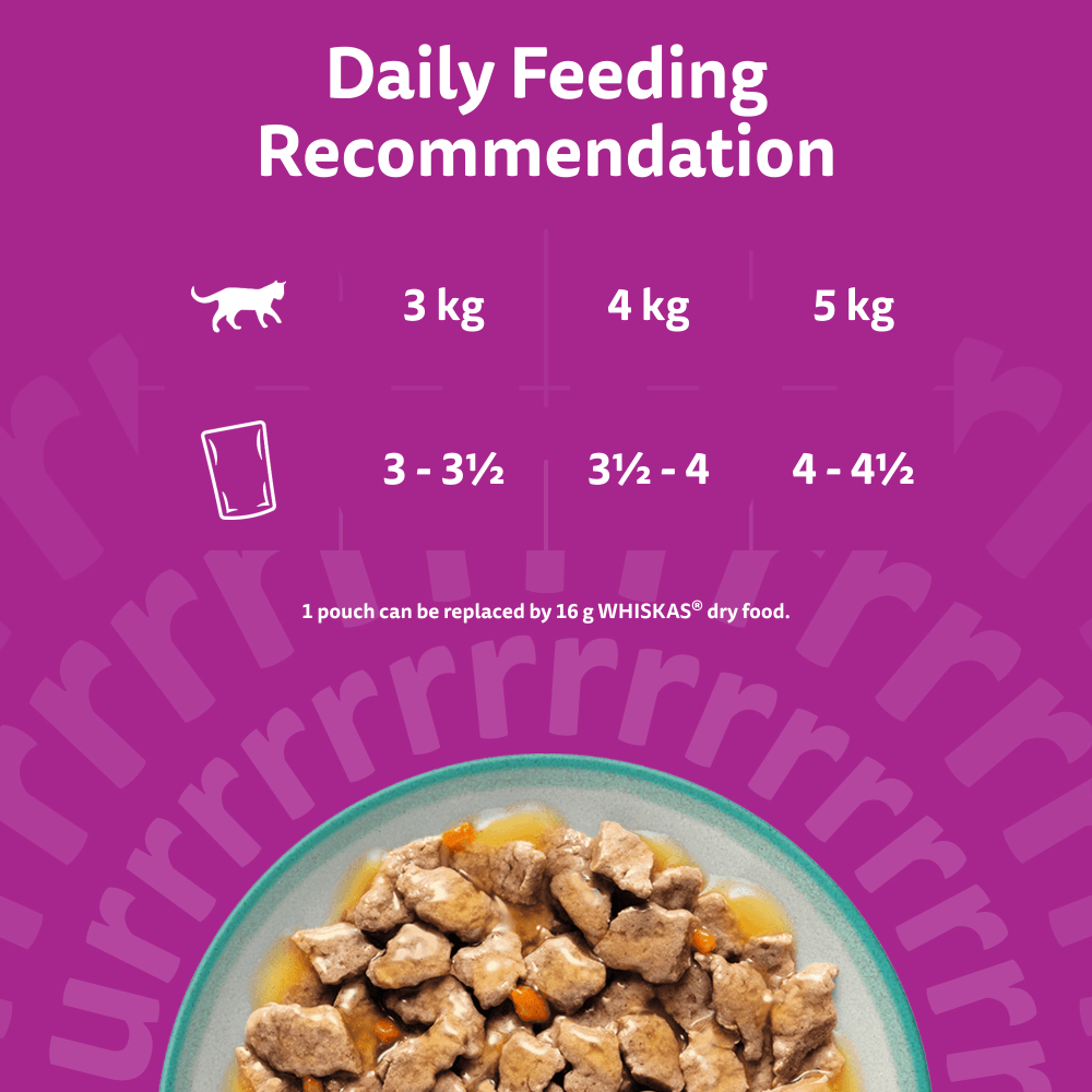 Welcome to our world of delicious recipes containing a tantalising mix of ingredients to delight the feline senses at every meal, without compromising on nutrition. Mealtimes have never been so enjoyable, nor so purr-ific! Tasted and approved by cats.100% high quality ingredients and specially formulated to provide all of your cat's daily needs.Deliciously prepared to preserve its natural goodness and garnished with vegetablesHealthy digestion and immune support90% of the protein comes from animal sourcesNo added artificial colours and preservatives.Ingredients