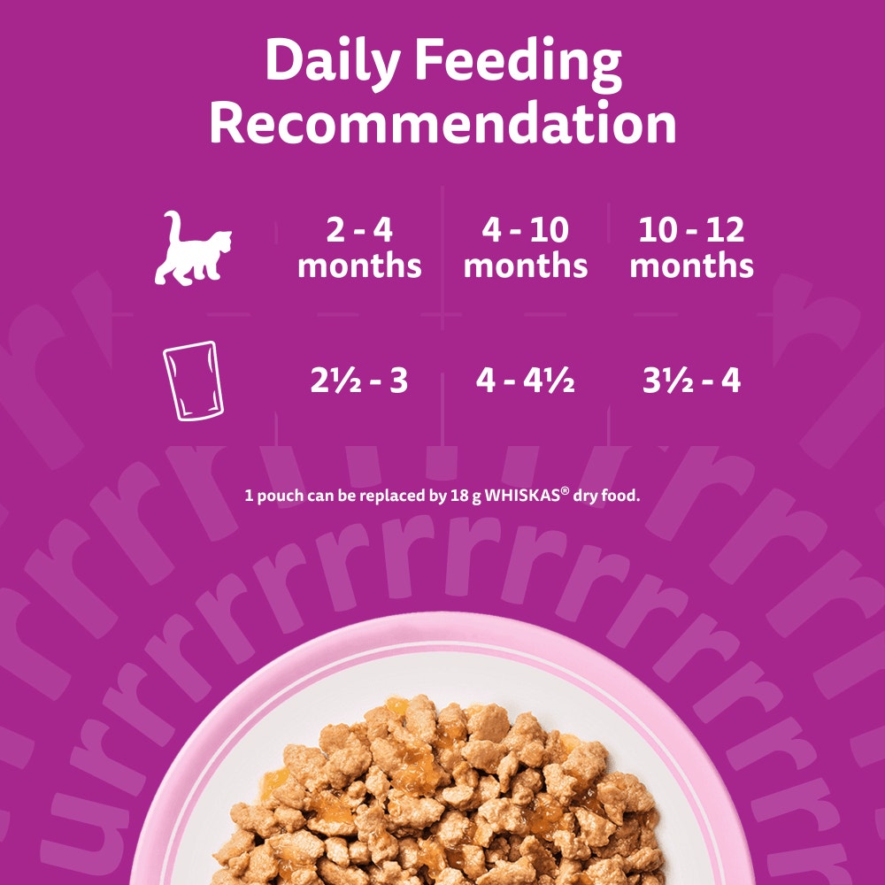 WHISKAS Kitten 2-12 mnths MIXED Menu Wet Cat Food Pouches in Jelly 12 x 85g