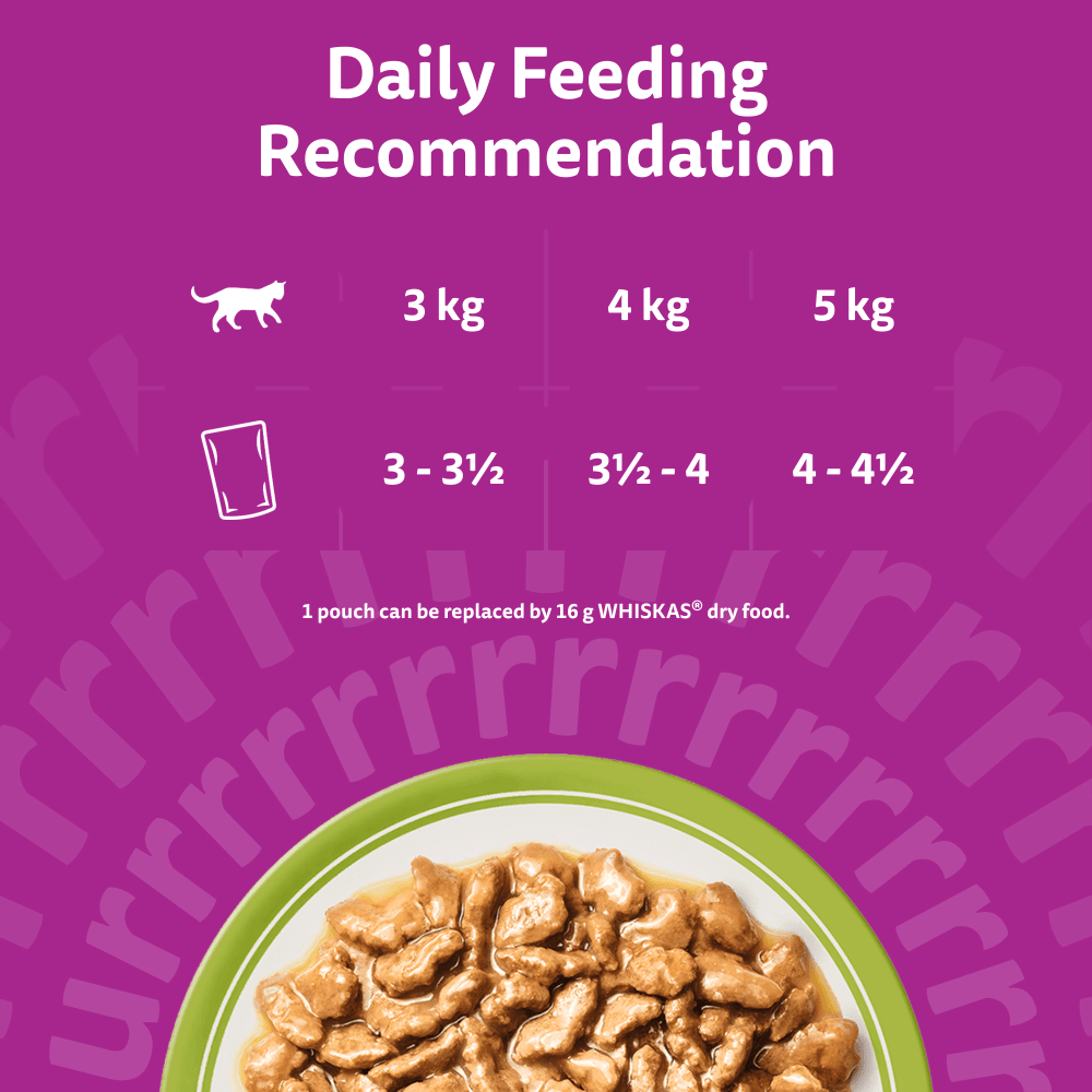Specially prepared to preserve the natural goodness and deliciousness of high quality ingredients, our favourite meals will see your cat rush to the bowl faster than ever before! Our tasty recipes are designed for contented purrs at every age….at mealtimes and beyond.100% high quality ingredients and specially formulated to provide all of your 7+ cat's daily needs.Mouth-watering flavours & textures for maximum purrs.Easy digestion & urinary tract health support90% of the protein comes from animal sourcesNo added artificial colours and preservatives.Ingredients